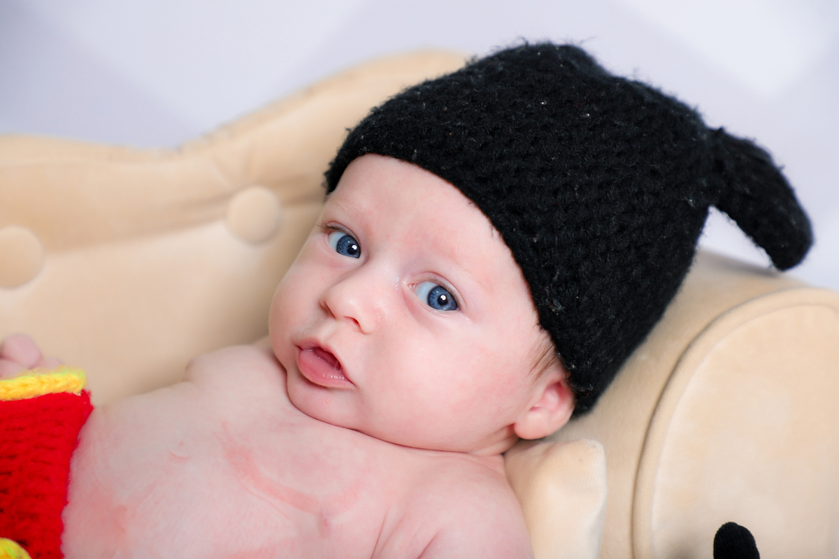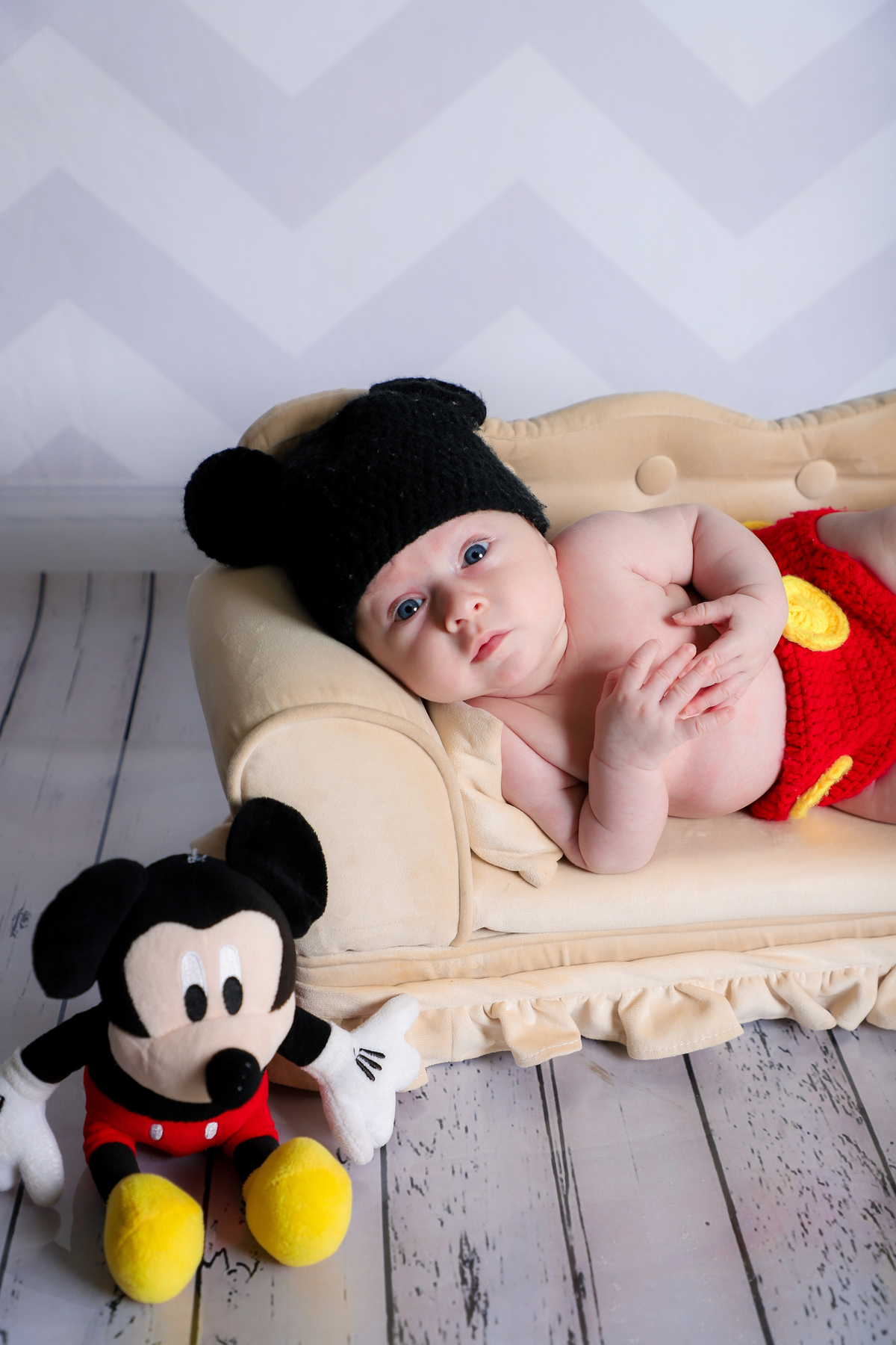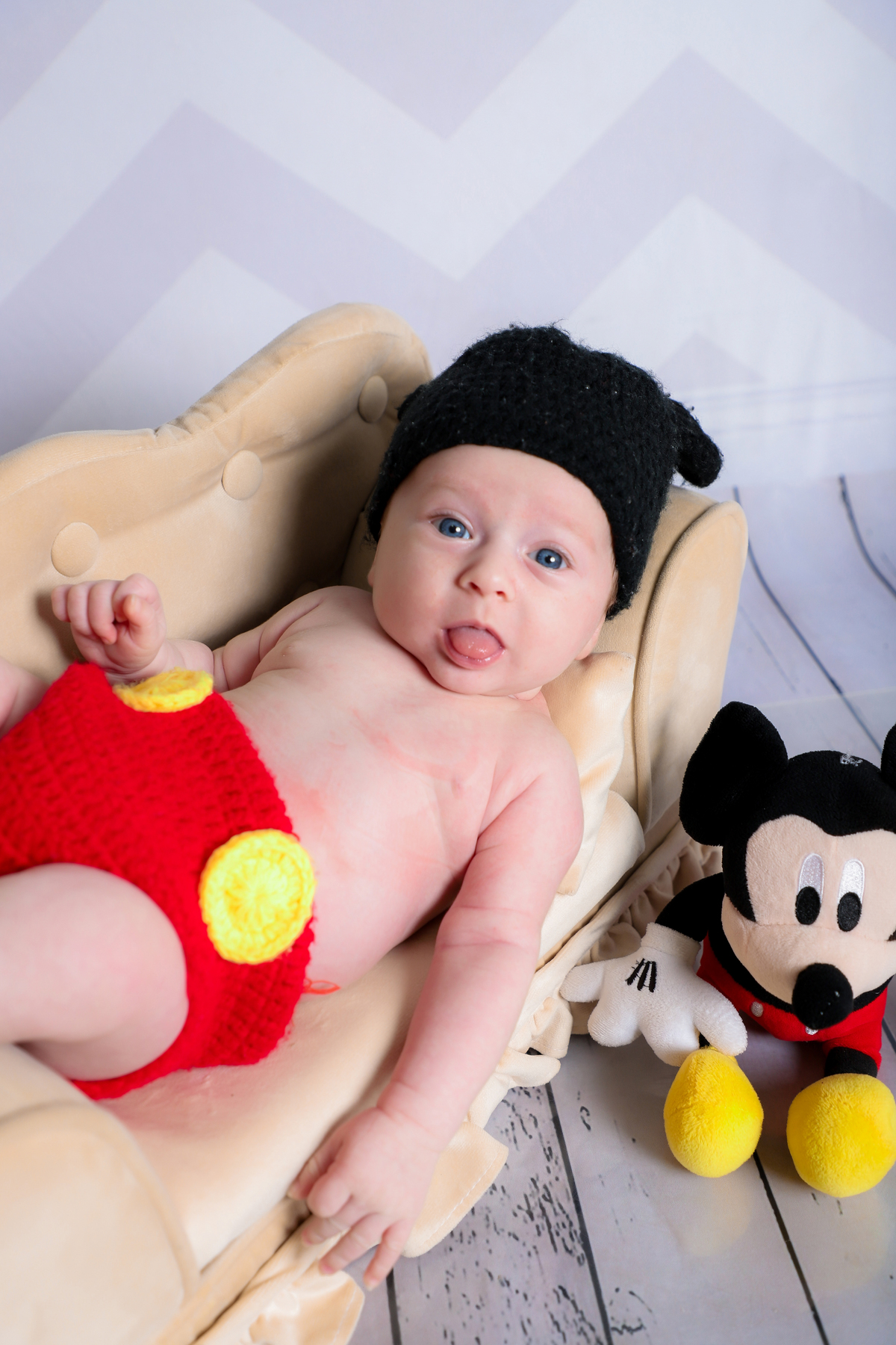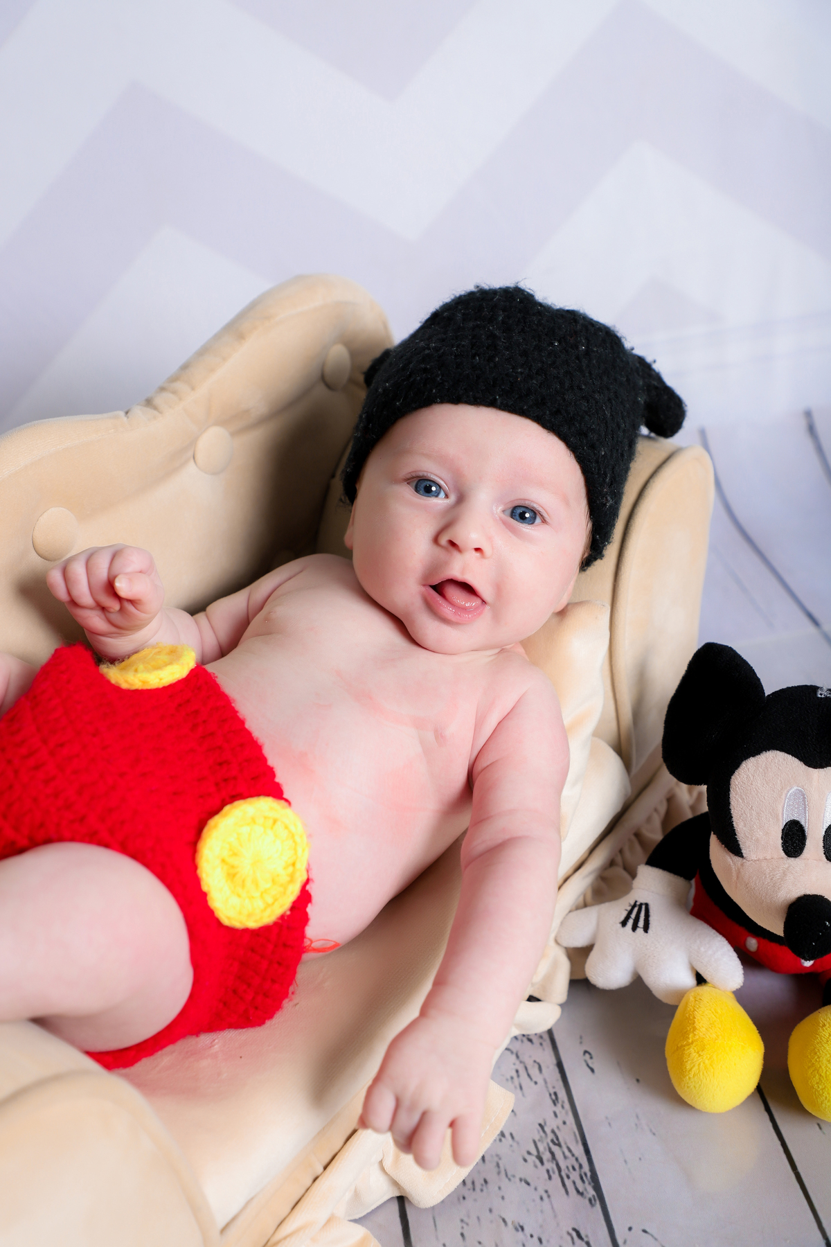 Ensaio mesversário do acompanhamento do Augusto de 2 meses no estúdio Abacaxis Fotografia de Maternidade em Limeira-SP. Tema do ensaio foi Mickey e cenário neutro.